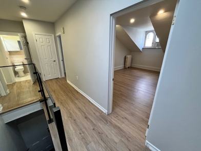 Top flooar apartment with two skylights spacious living area and a huge deck. Completely renovated. Five piece bathroom. spacious bedrooms, in turn of the century historical building. High Ceilings, Pot Lights, Enjoy A Spacious rooftop deck.