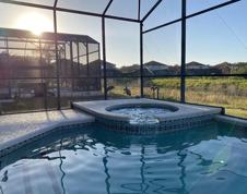 This beautiful 6 bedroom / 5 bathroom, fully furnished with brand new wood floors and brand new appliances such as dishwasher, refrigerator, stove and washing machine. Executive home is located in a well known Gated Community and features 24-hour gated security, no rear neighbors, very own private swimming pool/Jacuzzi with screen enclosure, both downstairs and upstairs master primary bedrooms with their own bathrooms, game room, family room, main living room has new modern furniture with modern decor, family room, and so much more. Ample 2,771 sqft. of living space! Close to main highway, however, private home. Only 20 minutes away from Disney parks and 30 minutes away from Universal Studios parks! HVAC Central Air and Heating with Nest Learning Thermostat.