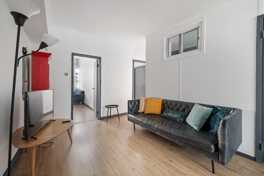 This apartment is perfect for both short-term and long-term stays and accommodates up to 6 guests with two double beds. The cozy living room features a sofa, coffee table, and a TV. Wi-Fi is included.