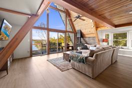 This home accommodates up to 18 guests and features two living areas, a large deck, and three bathrooms. The open-concept living space and kitchen area boast gorgeous views of Beaver Lake from every angle. The kitchen is fully stocked. There is an additional living space with lounge seating, a Smart TV, and board games. A washer and dryer are available for guest use.