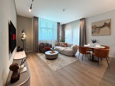 This bright and stylish apartment features a cozy sofa, smart TV, and a dining area for four. The fully equipped kitchen includes everything needed for a short or long-term stay, including a washing machine. The bedroom features a comfortable bed, quality linens, and generous storage. As a guest, you’ll enjoy full access to all hotel facilities, including a fully equipped gym, a large outdoor swimming pool with a pool bar, a kids’ play area, and stylish lounge and common areas. The apartment is brand new inside and soundproof.