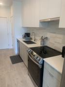 - One-bedroom unit with full-height glass sliding door
