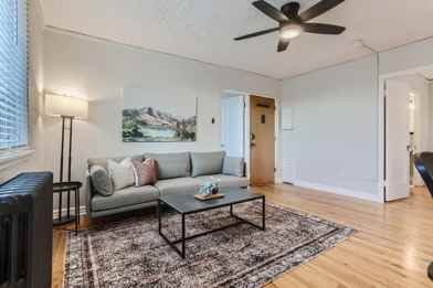 The host controls central heat from a single thermostat for the building's steam boiler system, while guests control window AC units and ceiling and tower fans. The apartment is dog-friendly with a strict no cats policy. Pet rent is $90 per dog per month, and pets must be added to the reservation. Noise disturbances are monitored, and a warning will be given for any reported issues. Additional disturbances may result in eviction without refund. All properties are non-smoking and non-vaping, with violation resulting in damage fees. Check-out time is 10 AM, with a $50 fee for every additional 30 minutes past check-out.