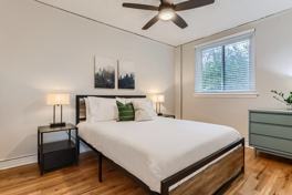 This apartment features a comfy queen bed with linens and a fully stocked kitchen. Plenty of closet space is available, and more storage can be requested. The apartment is equipped with a smart TV for streaming your favorite shows and includes all utilities and internet, valued at $150+/month. Free communal laundry is available in the basement, and a propane grill is provided for outdoor cooking.
