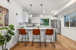 This home features a bright, contemporary interior with clean lines and modern finishes throughout. The private rooftop deck is a standout feature, offering stunning city views, perfect for morning coffee or sunset drinks.
