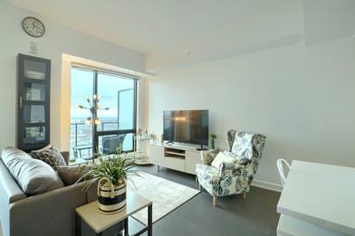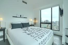 Built in 2016, this apartment is in the heart of downtown Montreal with security 24/7. Enjoy a fantastic terrace with a swimming pool and BBQ grills, a fitness center, a sauna and rain room, and many entertainment rooms. Just steps away from the Lucien l’Allier metro station, train, and the underground Montreal network.