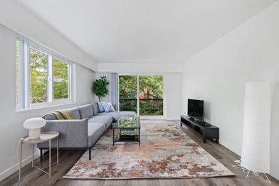 Enjoy a full kitchen, spacious living room with 4K Smart TV, dining area, private patio, and cozy queen bedroom with ample storage. This newly renovated apartment features a bright, modern design and hardwood floors.