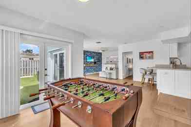 Enjoy 2 spacious living areas, one with a bar, and endless fun with foosball and ping pong. Step outside to your spacious, private fenced-in backyard oasis with a sparkling pool, barbecue grill, and cozy lounge area, ideal for relaxing, entertaining, and making unforgettable memories.