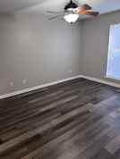The townhome features two spacious bedrooms, each with its own full bathroom, providing privacy and flexibility for roommates or a home-office setup. The open living area allows for comfortable entertaining, studying, or relaxing after a long day.