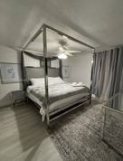 Beautifully Furnished Beach Themed Retreat. Step into this bright and beach themed seasonal rental, perfectly appointed for comfort and convenience. Located just a short walk from Stuart Airport (KSUA) and a local shopping center this home offers the ideal blend of relaxation and accessibility. Inside, you’ll enjoy king size beds with fresh linens in every bedroom, each equipped with its own Roku TV for easy streaming. The living room features a large Roku TV, ideal for movie nights or relaxing after a long day. The fully equipped kitchen includes cooking utensils, a coffee maker, and everything you need to prepare meals at home. Unwind on the spacious front porch as you enjoy Florida’s mild winter breeze, or stretch out in the large, private backyard, perfect for outdoor lounging or quiet evenings under the stars. The home comes with electricity powered by solar panels, plus water and sewer included, rare and valuable . For electric vehicle, the property offers two charging ports: one for Tesla and another for other EV models. All utilities included; electric, water, sewer, internet. streaming TV Please note, Garage is not included. Some exterior areas including the side RV parking, may be used by the owner. Added peace of mind comes from 24 hour security with Ring cameras. Whether you're here for work, travel convenience, or a peaceful seasonal escape, this charming home is ready to welcome you.