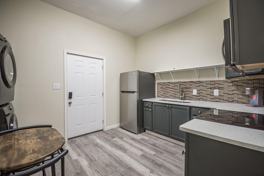 The kitchen comes equipped with a fridge, sink, oven, stovetop, as well upgraded appliances, including basic cookware, making it the perfect spot to whip up a meal or two.