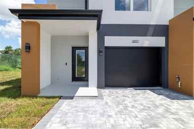 Beautiful brand-new 2-story townhome at Capri Village in Davenport, just minutes from Disney! Featuring 1,541 sq ft with 10’ ceilings on the main level, 8’ upstairs, 24x48 porcelain tile in living areas, and carpet in bedrooms. Gourmet kitchen with quartz countertops, stainless steel appliances, and 42” cabinets. Home includes Ring security system, blinds, covered lanai, private garage, and driveway for 2 cars. Exclusive community of only 12 residences with no CDD. Conveniently located near hospitals, outlet malls, and Central Florida attractions. Ready to move in!