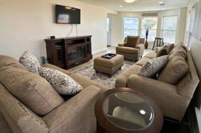 This beautifully designed home offers a spacious and comfortable layout. The primary bedroom features a luxurious king-size bed, soft linens, and plenty of closet space. The second bedroom offers a full-size bed, and the third bedroom is set up with twin bunk beds. The open-concept living area is bright and inviting, complete with a large smart TV, streaming apps, and a cozy sectional. Adjacent to the living room, a formal dining table seats six comfortably. The equipped kitchen includes modern appliances, a coffee maker, cookware, utensils, and everything you need to feel right at home. Guests will also appreciate the in-unit washer and dryer. The home also features fast Wi-Fi.