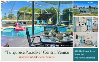 Welcome to your perfect Florida getaway! This ALL-INCLUSIVE fully-furnished, waterfront pool home offers the ideal blend of comfort, space, and serene water views. Thoughtfully designed, and fully renovated, it features a heated pool, split floor plan, two separate living rooms, spacious backyard, and more! Enjoy peaceful mornings overlooking the canal, spend your days by the pool surrounded by Florida sunshine and calming waterfront scenery, or visit pristine Venice beach and historic downtown Venice, that's just under 15 minute drive. THE SPACE features: ~ 3 bedrooms and 2 full bathrooms ~ Split floor plan, with 2 living rooms ~ 2 queen beds, 1 full bed, 1 twin bed, 2 futons ~ Fully stocked and equipped kitchen with all the cooking essentials including coffee maker, toaster, blender, pots and pans, utensils and more! ~ Stainless steel appliances, quartz countertops ~ Spacious screened lanai to enjoy evening barbecues or morning coffee, with unobstructed water views ~ Smart TVs in all rooms. High speed internet. No cable. ~ Washer and dryer in the garage ~ Two car garage- two parking spots in front of the garage. ~ CONVENIENTLY & CENTRALLY LOCATED: ~4 mi/ 10 mins to downtown Venice ~5 mi/ 13 min drive to Venice Beach ~22 mi/ 40 min drive to downtown Sarasota ~7.5 mi/15 mins to downtown Wellen Park ~8 mi/ 15 mins to COSTCO ~~~~~~~~~~~~~~~~~~~~~~~~~~~~~~~~~~~~~~~~~~~~~~~~~~~~ Rent includes all costs: utilities, internet, maintenance, pool heating. Refundable Damage deposit is half month rent. Refundable Pet damage deposit is 1/4 month rent. One time cleaning is $180. (One time pet cleaning fee is $150)