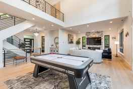 This expansive residence is designed for comfort and flexibility, featuring en-suite bathrooms, in-room TVs, and generous living spaces throughout. The primary suite boasts dual walk-in closets and a private balcony. A fully equipped daylight basement includes its own living room, kitchen, and washer and dryer. The two fully equipped kitchens are thoughtfully stocked with a full range of appliances, cookware, silverware, servingware, spices, coffee, and tea. There are six smart TVs throughout the home, including four in-bedroom TVs, with Netflix logged in and fast, reliable high-speed internet. All beds feature high-quality mattresses, premium linens, and plush duvets for a restful night’s sleep. Central air conditioning ensures year-round comfort. There are three sets of on-site washers and dryers for maximum convenience.