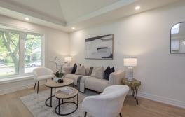 This beautifully renovated raised bungalow offers a rare blend of timeless design and modern convenience, now available for lease with flexible short-term rental options. The open-concept main floor features cathedral ceilings with a skylight, pot lights, and a stunning designer kitchen with Canadian-made custom cabinetry with LED lighting, a 7-ft centre island, KitchenAid stainless steel appliances including a gas range and pot filler, and elegant quartz countertops. Luxury Canadian hardwood flooring runs throughout, while the bathrooms showcase heated tile floors, custom vanities, LED mirrors, and a spa-inspired main bath with custom cabinetry. The home offers three spacious bedrooms, convenient main-floor laundry (with a roughed-in secondary option), and a separate side entrance leading to a fully finished lower level with above-grade windows, high-quality vinyl flooring, its own laundry, and a full set of stainless steel appliances-ideal as a one-bedroom in-law or secondary living space. Recent upgrades include spray foam insulation at the front of the home, all new wiring with ESA certification, a new roof (2025), new garage door, fiberglass front door, custom carport finishing, soffit exterior lighting, stair lighting, and an engineer's letter for the ceiling feature. Exterior improvements feature a modern stucco finish, new railings, professionally landscaped grounds with new walkways and stairs, and parking for up to six vehicles. Central air conditioning, an Ecobee smart thermostat, and extensive thoughtful updates throughout complete this exceptional, move-in-ready home.