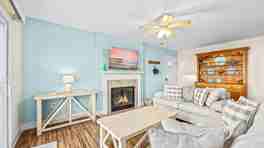 This professionally managed and meticulously cleaned home features an open-concept living area with plush seating, a large TV, and plenty of natural light. The fully equipped modern kitchen includes stainless steel appliances, all cookware and dishes, a toaster, blender, Keurig and drip-style coffee makers, an island with bar seating, and ample counter space. There is also a spacious dining area for enjoying meals together. The primary suite features a king-size bed and a luxurious en-suite bathroom with a walk-in shower. The guest bedroom includes a queen-size bed. The bunk room is great for kids or extra guests with full-over-full bunk beds plus an additional roll-out trundle bed. A queen-size sleeper sofa in the living room is perfect for kids or extra guests. There are two full bathrooms with modern designs, including a walk-in shower in the primary bath and a tub in the hall bath. Enjoy the private balcony to relax and enjoy the ocean breeze or enjoy a meal outdoors. An outdoor shower is available for convenient post-beach day clean up. This home is equipped with central heating and air, and a washer and dryer are in-unit for easy laundry during your stay. Please note that the fireplace is non-functioning and is for decorative purposes only.