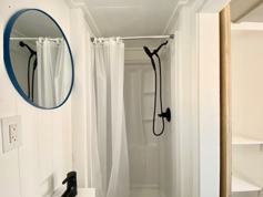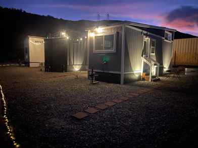 Escape to a Tiny Home Oasis just outside of LA. Nestled between Hungry Valley (Off Road state park) and the new Hard Rock Casino (sans Hotel), is Camp Tiny Homes. This previous airbnb is now being offer as a full time rental. Nestled between our other tiny homes is The Slice. Its angular shape creates unique architectural lines and ensures its loft has more space than other tiny homes. This furnished unit has a queensized loft and a pull out couch. The fully stocked kitchen (fridge, induction cooktop, microwave, toaster & pantry) makes it easy to cook and entertain. It has plenty of storage and a full bathroom. Includes AC/heat, fan and instant hot water. Comes with wifi, TV, sonos, a TV lounge, & outdoor firepit. The location is secluded, private, w security gate system and plenty of parking. We are also installing a communal laundry station. So much cooler & hipper than a high rise apartment complex.