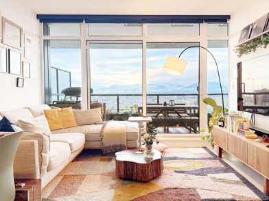 A new, centrally-located, architect-furnished, cozy oasis with stunning view of the mountains, great building amenities and high-quality furnishings in a walkable and lively neighbourhood.