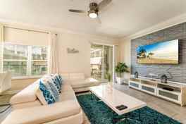 This amazing luxury townhome features two living room spaces, a dining area, and an equipped kitchen with a breakfast bar. It also includes a private screened pool with a covered lanai, four bathrooms, a washer and dryer, hairdryers, an iron, ironing board, and complimentary internet access.