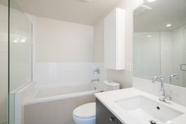 Breathtaking VIEWS of Water, City, and Mountain, in this 702 sq ft 1 Bed + Den + Flex at Vancouver's iconic "Central" building. This home features an open concept kitchen w/full sized s/s appliances, gas stove, dishwasher, and stone countertops, Central A/C, laminate flooring , and in suite laundry. Entertain in the large living room or step outside on your patio with VIEWS. The unit also features a large walk-in shower and separate tub, Den/Solarium and an additional Flex room. Steps to Seawall, Olympic Village & Skytrain stations, and FIFA World Cup events.