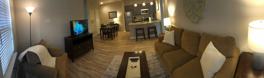 This apartment is well-appointed with a large kitchen equipped with everything you will need for cooking, including a refrigerator, dishwasher, microwave, oven, and range. Moreover, it has a large flat screen TV in the living room.