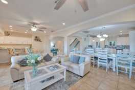 This spacious beach retreat is designed for unforgettable island getaways. It features a fully stocked kitchen with high-end stainless appliances, ample cabinetry, a large island with high seating, a wet bar, a mini fridge, and a Keurig coffee maker. Enjoy the pool table, board and card games, two sets of washer and dryer, a large plush sofa in the living room, and smart TVs. The home also offers private patios and balconies.
