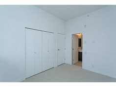 Modern kitchen boasts quartz countertops, stainless steel appliances with built-in microwave, under cabinet lighting, sleek cabinetry, and ample counter space. The unit includes a spacious den area large enough to fit a bed - perfect for a guest room or working from home! Bright bedroom with walk-through closets and ample closet space, plus the convenience of 2 full bathrooms including cheater ensuite.