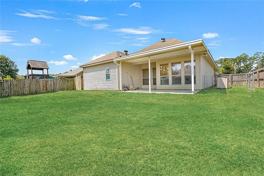 This corner lot, 3 bed/2 bath, home in Windstone is absolutely beautiful and provides lots of natural light thanks to the open floor plan! The kitchen has solid cabinetry, granite countertops, stainless steel appliances, backsplash, bartop seating, and a cozy breakfast nook. There's a separate laundry room, and as an added plus, there's no carpet throughout. The primary bedroom offers a suite bath, featuring a garden tub, a separate shower, and a large walk-in closet. Out the backdoor, you'll find a covered patio, good green space, and rear yard access.