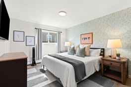 This apartment features a spacious bedroom with a king-size bed and a large closet, a workspace, a fully equipped kitchen, a 55-inch smart TV with your favorite apps, high-speed Wi-Fi, free parking, extra towels, caffeinated coffee, and on-site laundry with multiple washers and dryers.