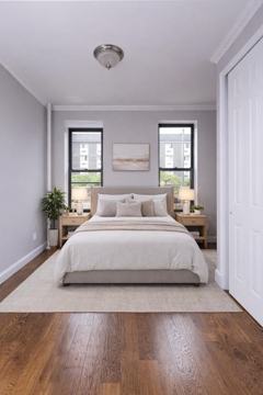 Available for March 1 occupancy, this beautifully renovated 1-bedroom, 1-bath apartment offers modern upgrades paired with classic city charm. The updated kitchen features stainless steel appliances and a dishwasher, while the in-unit washer and dryer provide everyday convenience. Additional highlights include exposed brick, hardwood floors, high ceilings, and a sleek, modern bathroomcreating a bright and inviting living space. Perfectly situated in the heart of the Theater District, the apartment is just steps from excellent shopping and dining. Transportation is effortless with the M11 and M50 bus lines around the corner and easy access to multiple subway lines, including the C, E, and 1 trains.
