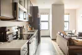 This apartment was created with comfort and ease in mind and features in-house laundry, a fully equipped kitchen for baking or cooking, cozy corners to curl up with a book, fast Wi-Fi, a desk for working, and table space for meals. The apartment sleeps two with a comfy queen bed and has flexible seating areas so you can work or relax at your convenience. The sofa may serve as additional sleeping space, however please note it does not have a pull-out bed. Amenities include a smart TV with Airplay, self check-in, high-speed Wifi, community rooftop clubroom and patio, game room, co-work space, and fitness center.