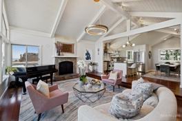 Enjoy sweeping, panoramic views of San Francisco, the Bay, and Ring Mountain from this spacious 3-bedroom / 2.5-bath home in Mill Valley. Thoughtfully upgraded and filled with natural light, the home features cathedral ceilings, hardwood floors, and a classic wood-burning fireplace that anchors the main living space. Multiple outdoor areas—including a view deck—extend the living experience and create ideal settings for entertaining, relaxing, or simply taking in the scenery.