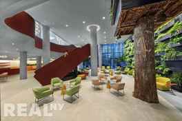 This full-service building is located in the heart of Bushwick, Brooklyn. 24/7 Concierge. Bowling alley, golf, boxing, gym with rock-climbing, arcade, indoor pool and roof deck with BBQ grills. Resident events. Grocery store at the building. Amenity fee is $125 per person monthly.