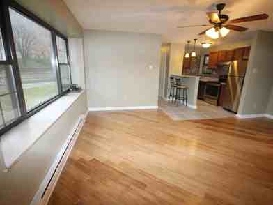 This apartment features hardwood floors in the main living areas, stainless steel kitchen appliances, and cute, comfortable bedrooms with plush carpeting. The layout is both functional and inviting, blending modern finishes with everyday comfort.