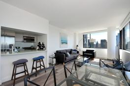 Discover amazing city skyline and Hudson River water views from this 34th-floor apartment. Feel at home in this fully furnished 2-bedroom, 2-bathroom apartment in a doorman elevator building.
