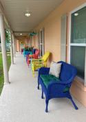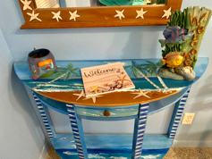 original artwork throughout, butterfly gardens and huge outdoor eating area with picnic tables, relaxed shaded seating, and grill. All handicapped accessible- no steps anywhere on the property. Huge shared outdoor area. Bring your suitcase and groceries and come prepared to unwind and watch the gorgeous sunsets from the covered porch!