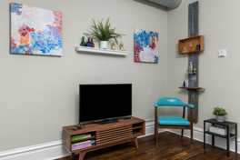 Central AC, forced air heat, fridge, dishwasher, gas stove, in-unit laundry, ceiling fans, high speed Wi-Fi internet, smart TV and tasteful furnishings all make this space a comfortable home away from home during your stay in STL! Pets are welcome with a non-refundable fee.