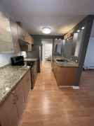 Kitchen: Fridge, freezer, dishwasher, electric stove, microwave, open layout.