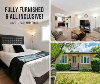 Fully furnished and all-inclusive, this turn key main floor 3 bedroom rental offers a rare opportunity in a quiet North London neighbourhood. Located at 27 Ardsley Road, this bright main floor unit of a duplex is thoughtfully set up with everything you need. Just bring your suitcase and settle in. The unit features three fully furnished bedrooms, each equipped with a queen bed, flat screen TV which you can enjoy with the included Netflix and Amazon Prime. The furnished living room and fully equipped kitchen create a comfortable and functional space for everyday living, whether you're working, studying, or relaxing at home. In suite laundry adds convenience, with two parking spaces available. Enjoy shared access to a spacious backyard, perfect for fresh air and outdoor downtime. This home is ideally situated just minutes from Masonville Mall, Western University, downtown London, parks, schools, and everyday shopping, making it a great option for professionals, students, or those relocating to the city. Available now with a 12 month lease. Rent includes heat, water, hydro, air conditioning, internet, and parking. A true turnkey rental in a prime North London location.