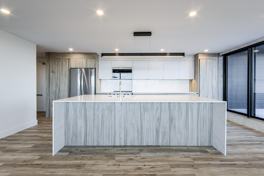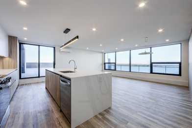 Experience the pinnacle of lakeside living in this meticulously renovated penthouse, where modern sophistication meets the tranquility of Lake Ontario. Spanning a generous 1,420 square feet, this three-bedroom, two-bathroom residence has been transformed from top to bottom into a contemporary retreat. At its heart lies an Italian-designed chef’s kitchen featuring an oversized quartz waterfall island, premium stainless steel appliances, and a striking tiled feature wall—perfect for hosting or quiet evenings at home.