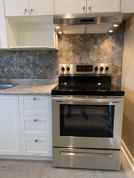The kitchen was updated with white carpentry and stainless energy efficient appliances.