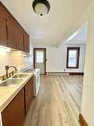 This second-floor, one-bedroom, one-bathroom apartment features new flooring in a quiet, peaceful neighborhood. The kitchen features a butcher block counter, and a shared enclosed porch. The bathroom includes a stand-up shower. This apartment also has a coin-operated laundry on site. Heat is electric, tenants are responsible for electricity.