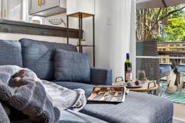 Enjoy the private outdoor space with a raised wood deck with outdoor seating and dining and a grill for easy outdoor meals. Pets are welcome with a fee of $100 per pet per stay, or per month for stays exceeding 28 days.