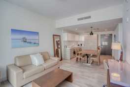 This apartment features a plush king-size bed, a comfortable sofa bed in the living room, and a fully equipped kitchenette. High-speed Wi-Fi makes this apartment perfect for remote work. This 1-bedroom unit accommodates up to 4 guests.