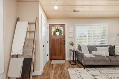 This professionally cleaned and sanitized home features fast Wi-Fi, ideal for working remotely, and an in-house washer and dryer. The fully stocked and equipped kitchen includes stainless steel appliances such as a microwave, fridge, stove, and dishwasher, along with glasses, mugs, dishes, and cutlery.
