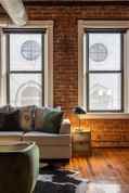This loft is designed as a beautiful and open space with plenty of room for relaxing, doing yoga, or having a few drinks before going out. You'll have a gorgeous, spacious kitchen and living area, a queen bed, and two smart TVs. There is a half bath downstairs and an exquisitely tiled full bathroom upstairs, along with an in-unit washer and dryer.