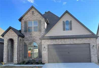 North facing house located in Aurora neighborhood. The home features 4 bedrooms 3 bathrooms with an open layout with large living room with fireplace and French doors leading to a covered patio with an outdoor fireplace. The kitchen features a gas range with a vented hood, a pantry, and a large granite island. First floor primary suite, featuring a vaulted ceiling and a luxurious private bathroom with double vanity, soaking tub, walk-in shower, and walk-in closet. Additional second bedroom downstairs, and two spacious bedrooms upstairs, each with walk-in closets.
