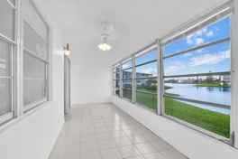 Beautifully updated unfurnished 2-bedroom, 1.5-bath second-floor condo with serene water views from the enclosed balcony. Freshly painted, ceramic tile floors throughout. Just steps from the pool, with an assigned parking space conveniently located outside the unit plus ample guest parking. Located in the desirable 55+ Century Village community offering a clubhouse, concerts, movies, billiards, daily activities, gated entry, and complimentary courtesy bus. Unit may be rented annually.