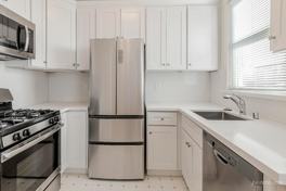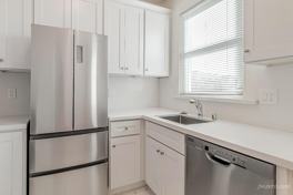 ~ Remodeled kitchen with stainless steel appliances featuring gas stove, microwave and dishwasher